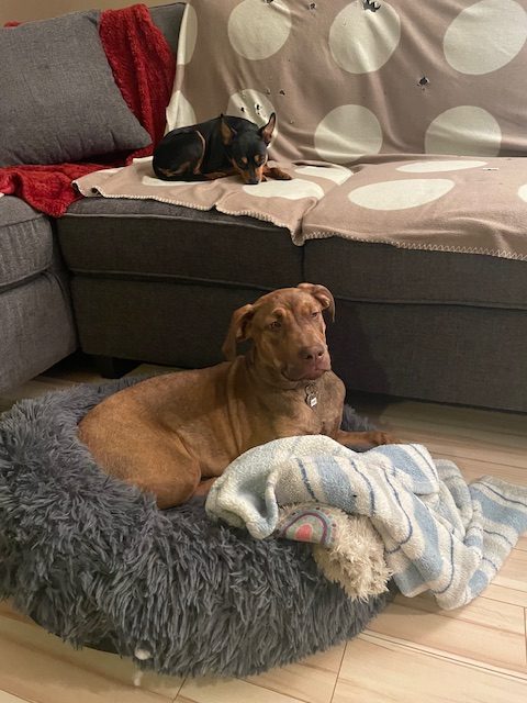 I’d be happiest in a home with a yard where I can run and play, maybe with another furry friend or some kids to keep me company. If you’re looking for a sweet, loving, slightly clumsy puppy who’s ready to grow up by your side, I just might be your girl!