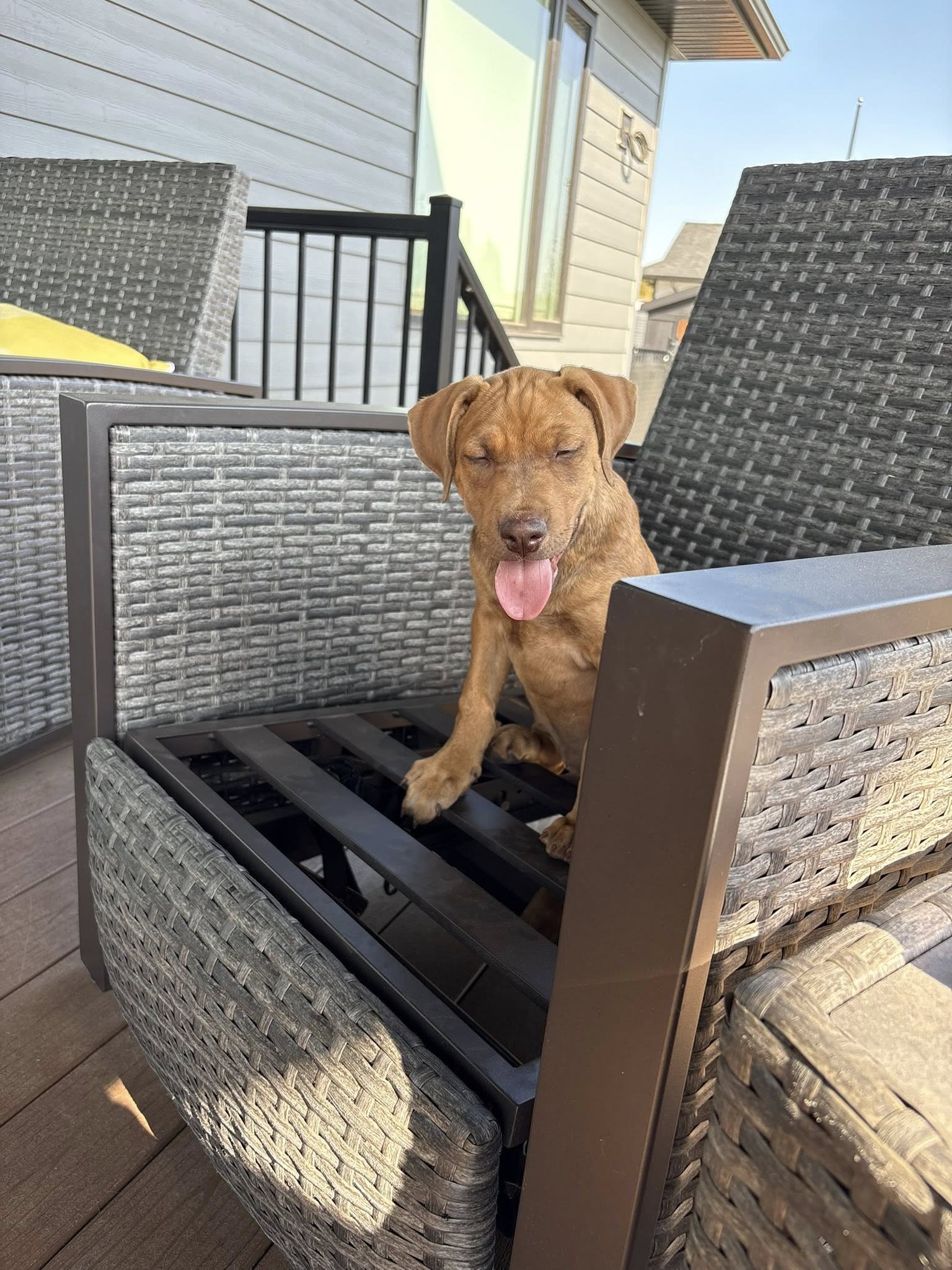 I’m your typical happy, playful puppy who’s ready to bring love, laughter, and a little bit of silliness into your life! I love spending time in the backyard playing soccer and going for walks to explore new sights and smells. Sometimes I get so excited that I trip over my own paws—but don’t worry, I just shake it off and keep going!