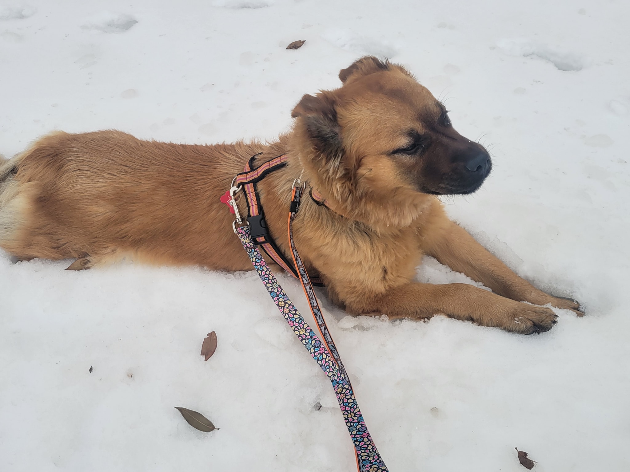 My favorite things? Snow! I absolutely love running around outside and tilting my head to listen to all the sounds. My foster family says my head tilt is extra cute because one of my ears pops up—adorable, right?