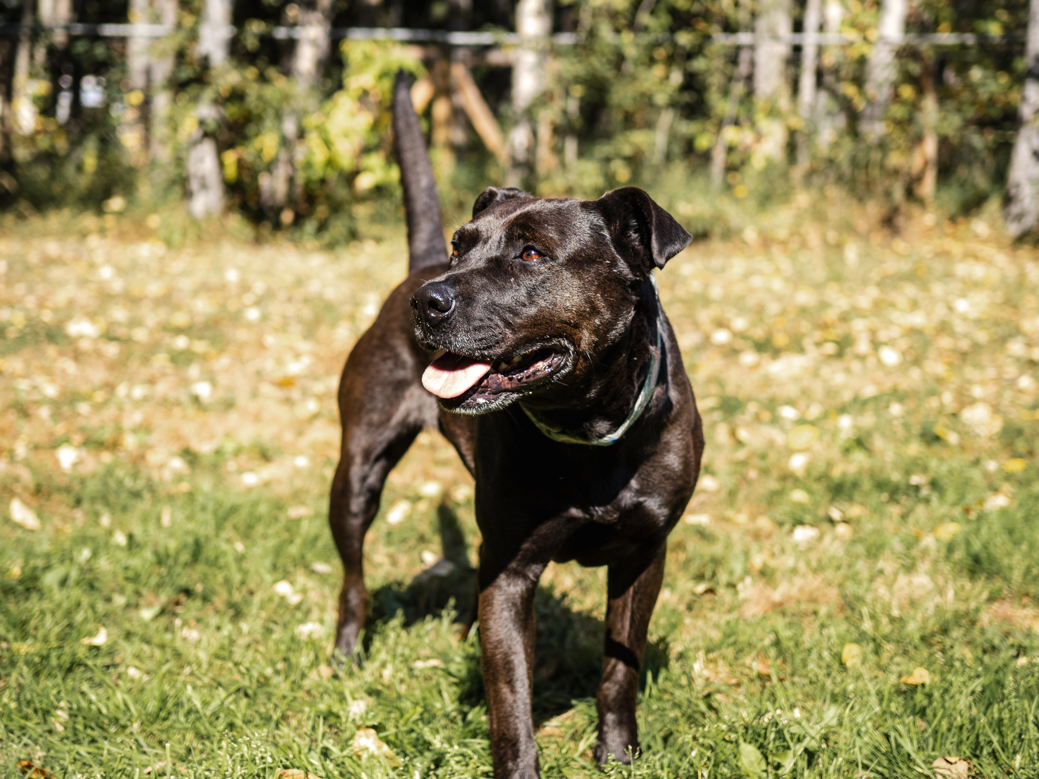 I might be a big girl, but don’t let that fool you—I’m as gentle as they come, especially with kids. I love meeting new people. I’m a bit selective when it comes to making friends with other dogs—I might be more likely to prefer my own space. However, with the proper introduction I have been able to make a few close friends to play individually with. In the past, I have made some friends with cats.