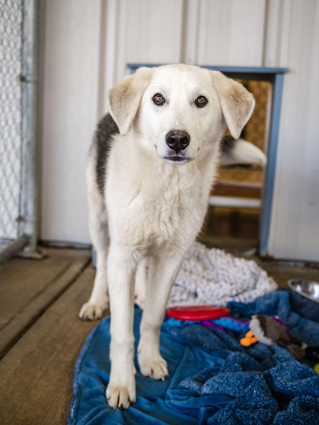 Norman is a gentle, shy dog who’s still learning to feel comfortable in new situations. He bonds strongly with the people he trusts and especially enjoys the company of kids and other dogs. Norman can be timid with adults at first and prefers calm, predictable interactions. He’s still building confidence with handling, car rides, and new environments, and will benefit from a patient adopter who can go at his pace. Norman would do best in a home with another friendly, confident dog to help guide him, and with adopters who use positive reinforcement to help him continue growing in confidence.