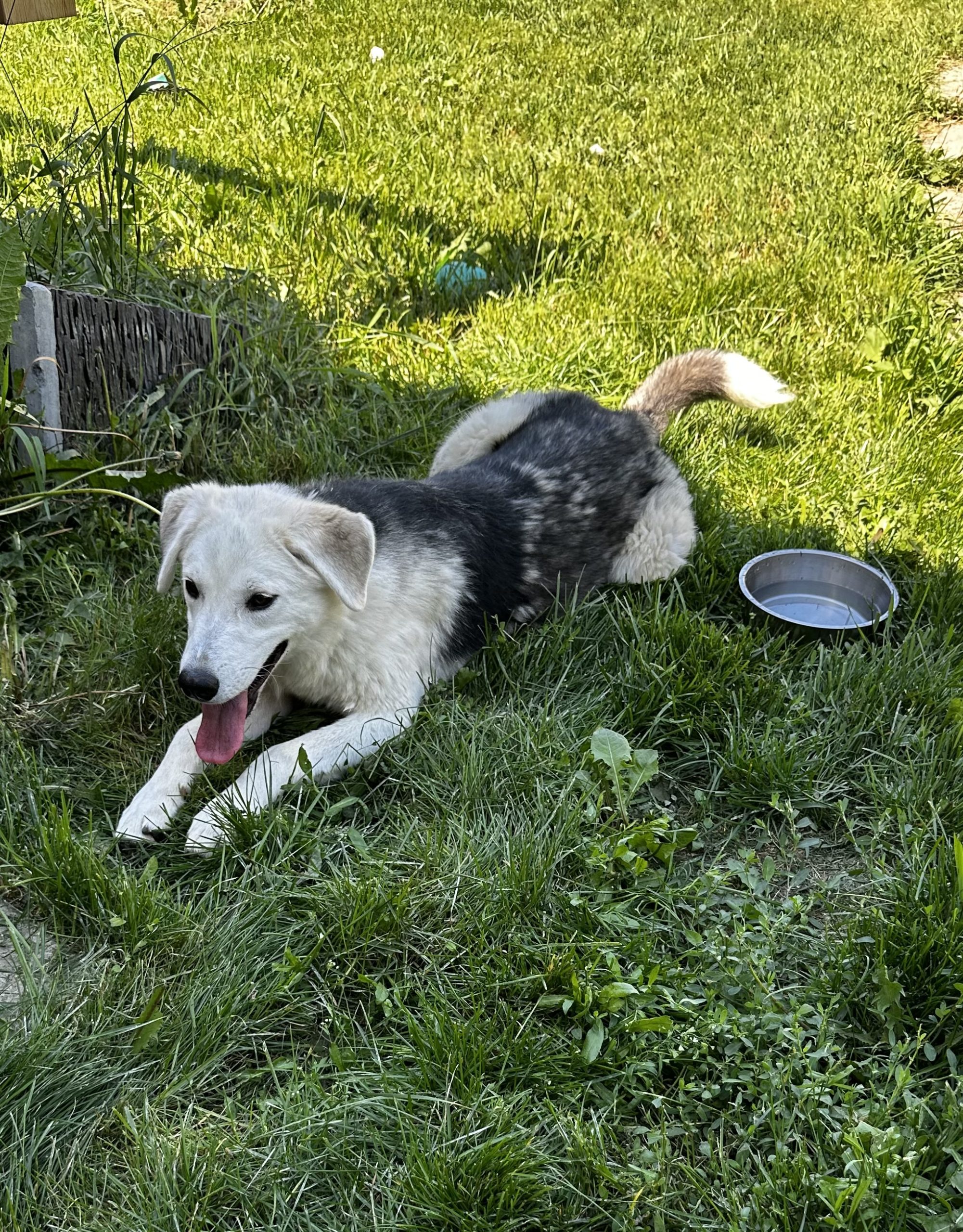 I’m still learning to trust adults, but I’m making progress every day. I’m a little timid when it comes to new experiences, especially getting in the car (I’m not a fan of that yet!) and putting on my harness, but I promise, with time and patience, I’m a fast learner. I know when it’s time to go outside because I ring the bell—yep, I’ve got that down!