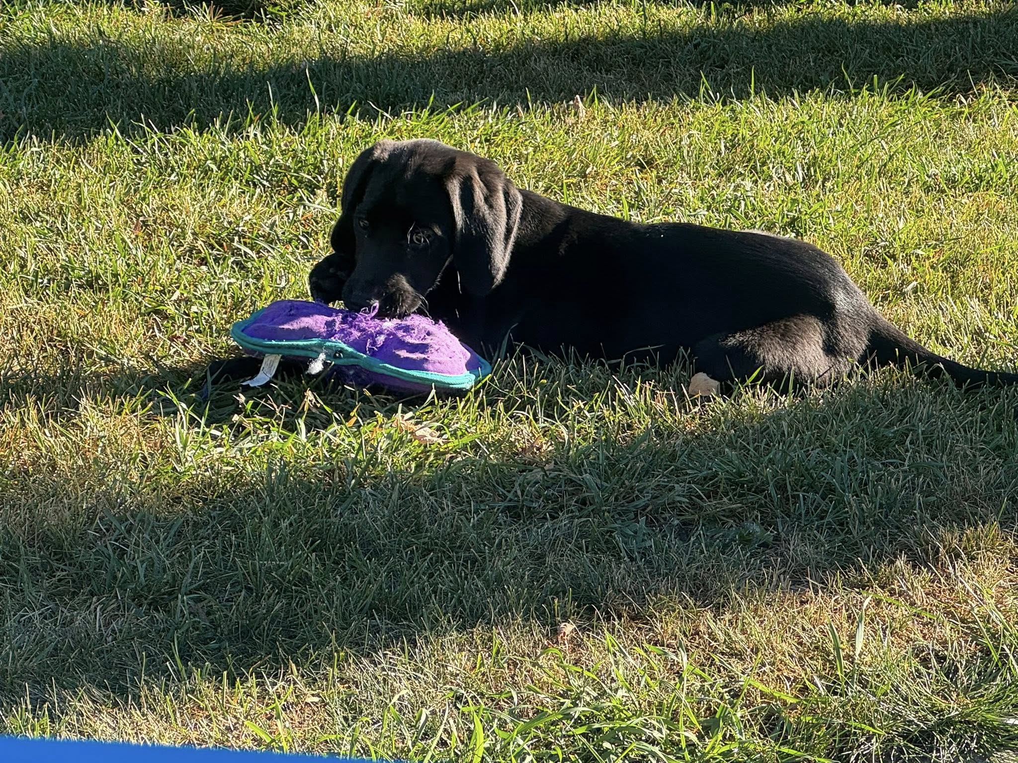 I’m doing really well with my house training — no accidents lately! I’m also learning my crate manners, and with a treat or two for encouragement, I settle in nicely. I love toys (especially the ones that someone else is playing with!) and can spend ages chewing or carrying them around proudly.